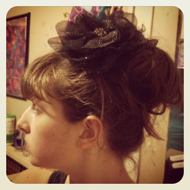 5.Twist hair and wrap it around your pony. Put in about 3 pins to hold it in place.